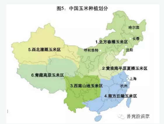 中国的玉米种植面积有3亿亩左右,分为六个种植区: